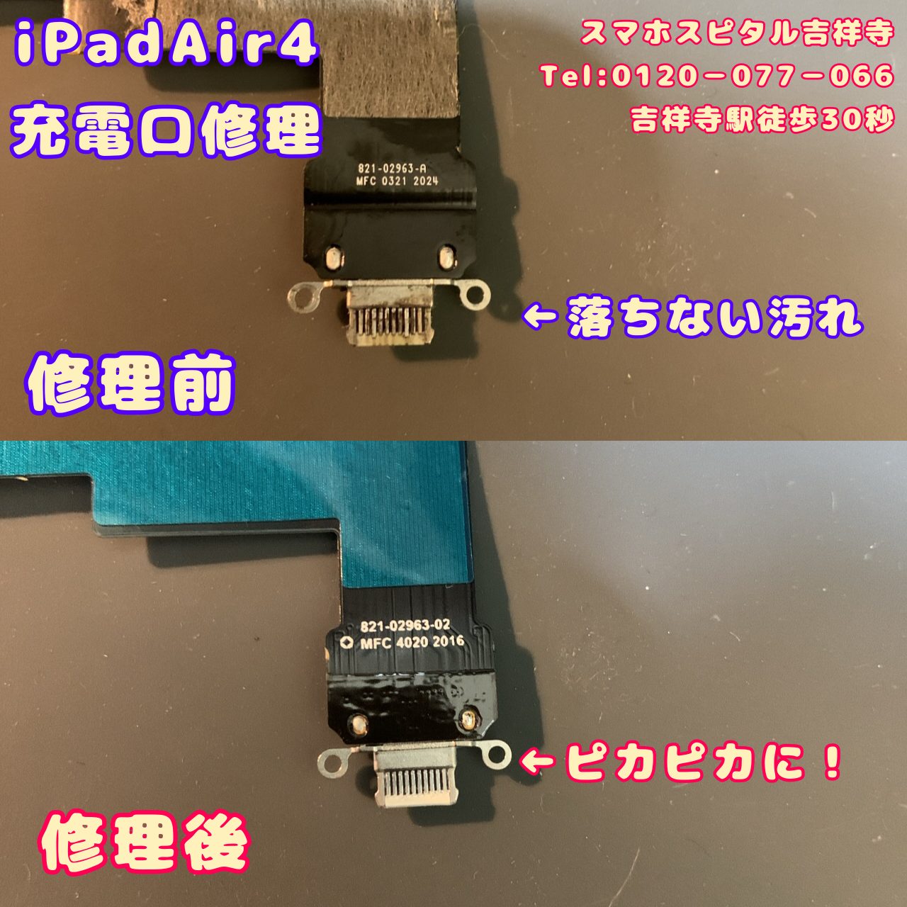 【iPadAir4(A2072/A2316/A2324/A2325)】いつの間にか充電ができなくなったiPad 180分~即日修理♪