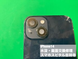 お持ち込み頂いたiPhone14は背面にガラスが割れている状態でした。