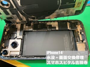 iPhone14を水没させてしまい、電源が入らない状態から復旧修理のご依頼!