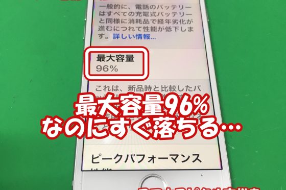 最大容量が90%以上でもバッテリーの劣化で電源落ちることはあります!!