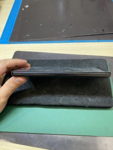 端末を確認させて頂くと、画面の左の側面が浮いてしまっている状態でした。