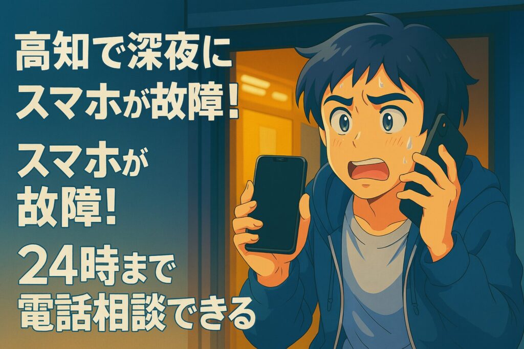 深夜、高知市内で突然スマホが動かなくなった…。「どうしよう、明日朝一番で使いたいのに」「お店はどこも閉まっている時間だ…」そんな絶望的な状況でも、どうかご安心ください。
