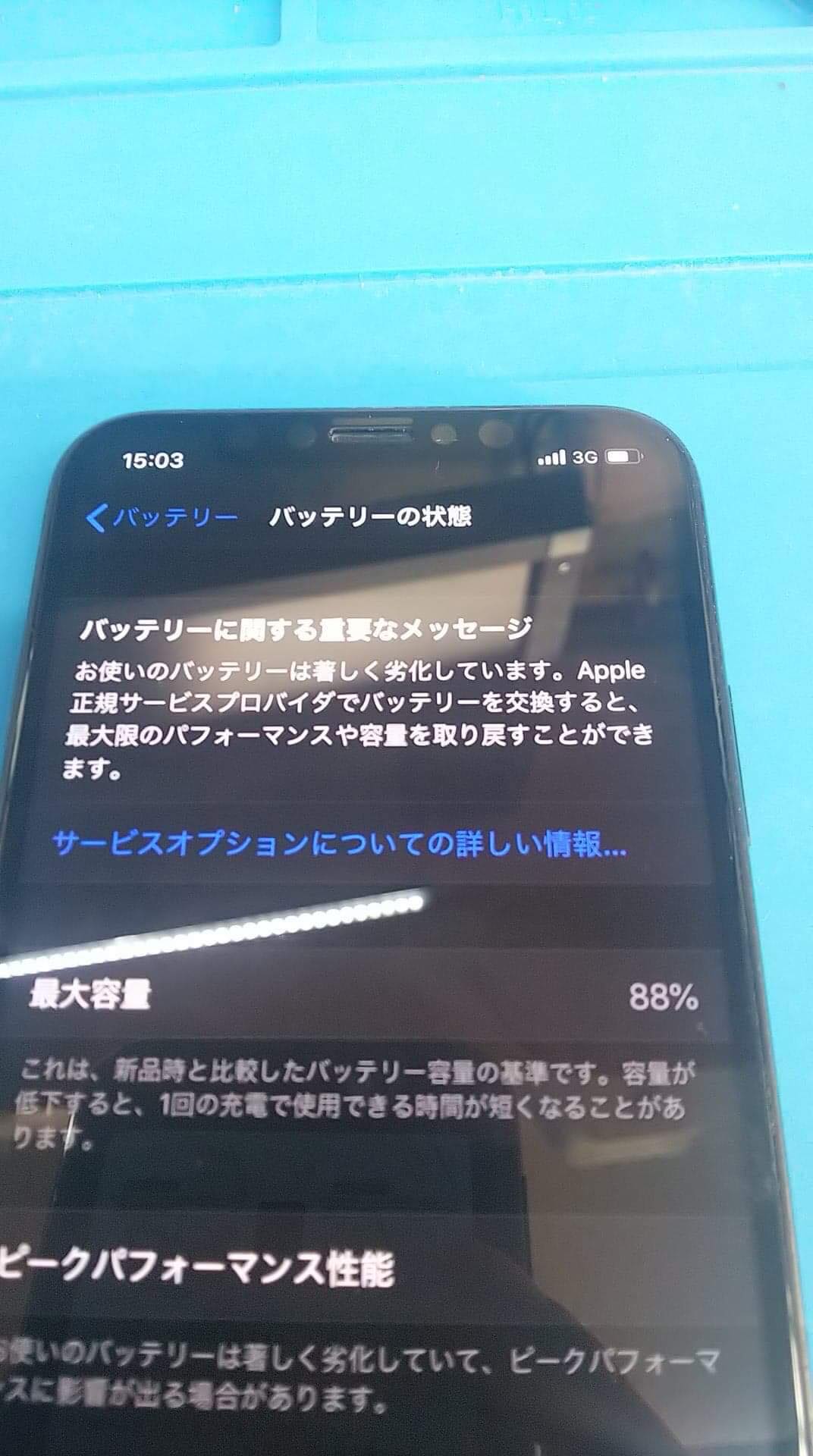 最大容量88%なのに「お使いのバッテリーは著しく劣化しています」iPhoneX修理のご相談。高知県総務省登録修理業者スマホスピタル高知