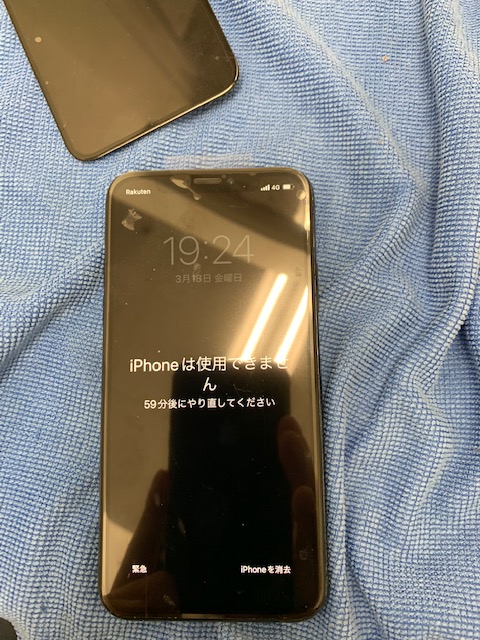 ですが、なんとパスロックがかかってしまっている状態で、1時間ほど操作が出来ない状態です。