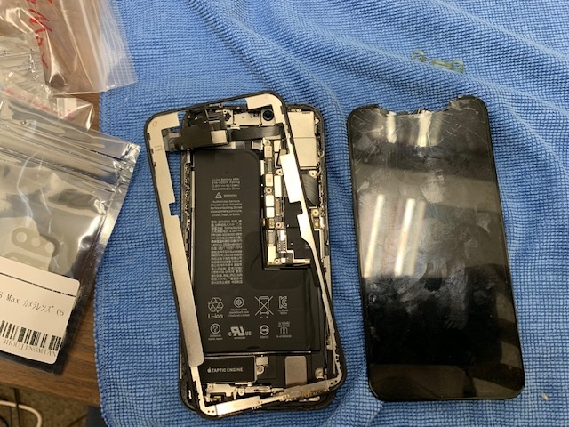 本日は、地面に落ちた衝撃で画面が割れてしまったどころか外れてしまったiPhoneXsの修理についてです。