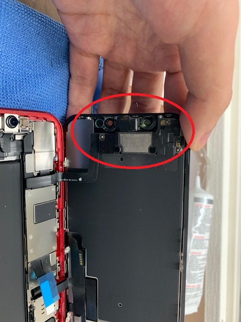 画面の取り外し後は、イヤースピーカー部分の移植します。