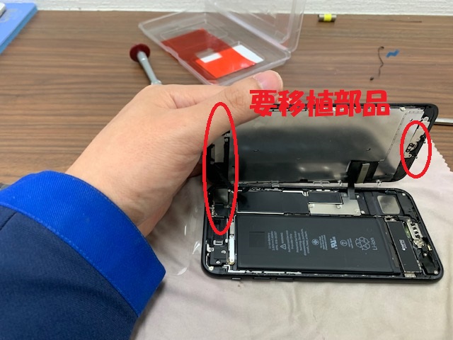 元の画面からはイヤースピーカーや近接センサー、ホームボタンなどの部品を移植する必要があります。