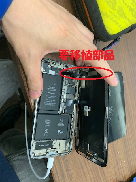 後は、画面を新品のものと交換するだけですが、新しい画面にはイヤースピーカーなどの部品はついておりませんので、そちらは旧画面部品から移植します。