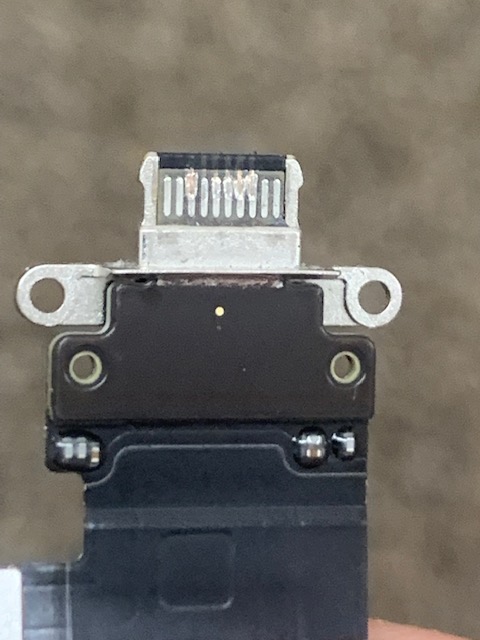 確認してみると、充電口端子部分が両面とも傷ついている状態でした。