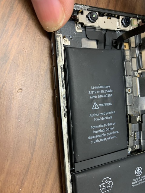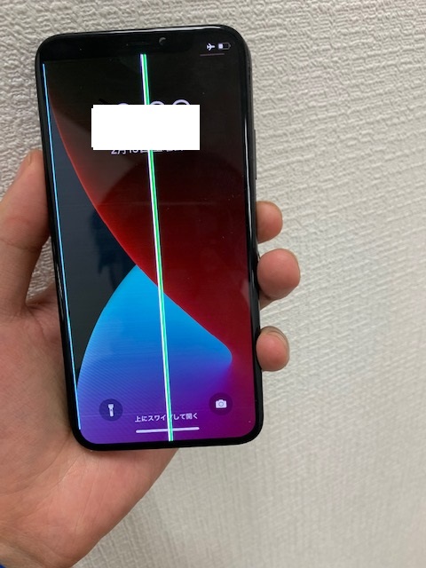 バッテリーが膨張して、画面が持ち上がってきていたのをそのままご使用されていたようなのですが、ついには画面に線が入ってしまうようになってしまったとのこと。