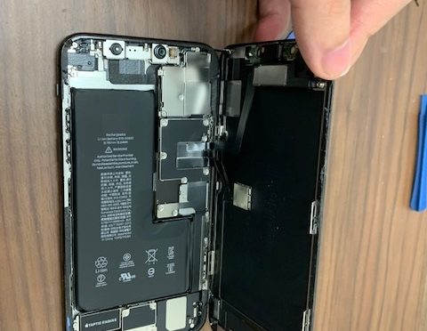 地面に落ちた衝撃で画面が分離してしまったiPhoneXsの修理