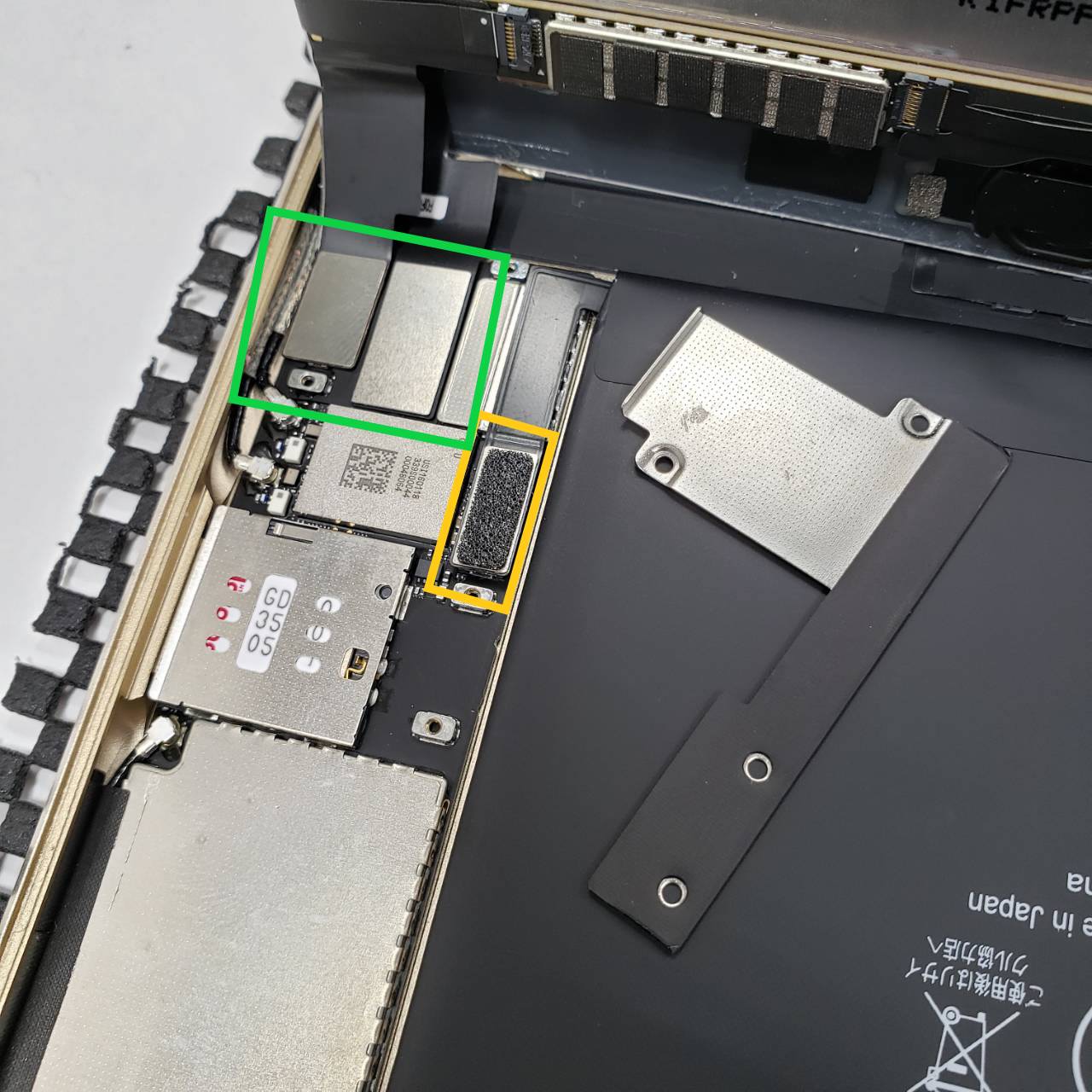 無事にiPad mini4の画面を外すことができましした。先ほどの部分がオレンジ枠のところになります。
