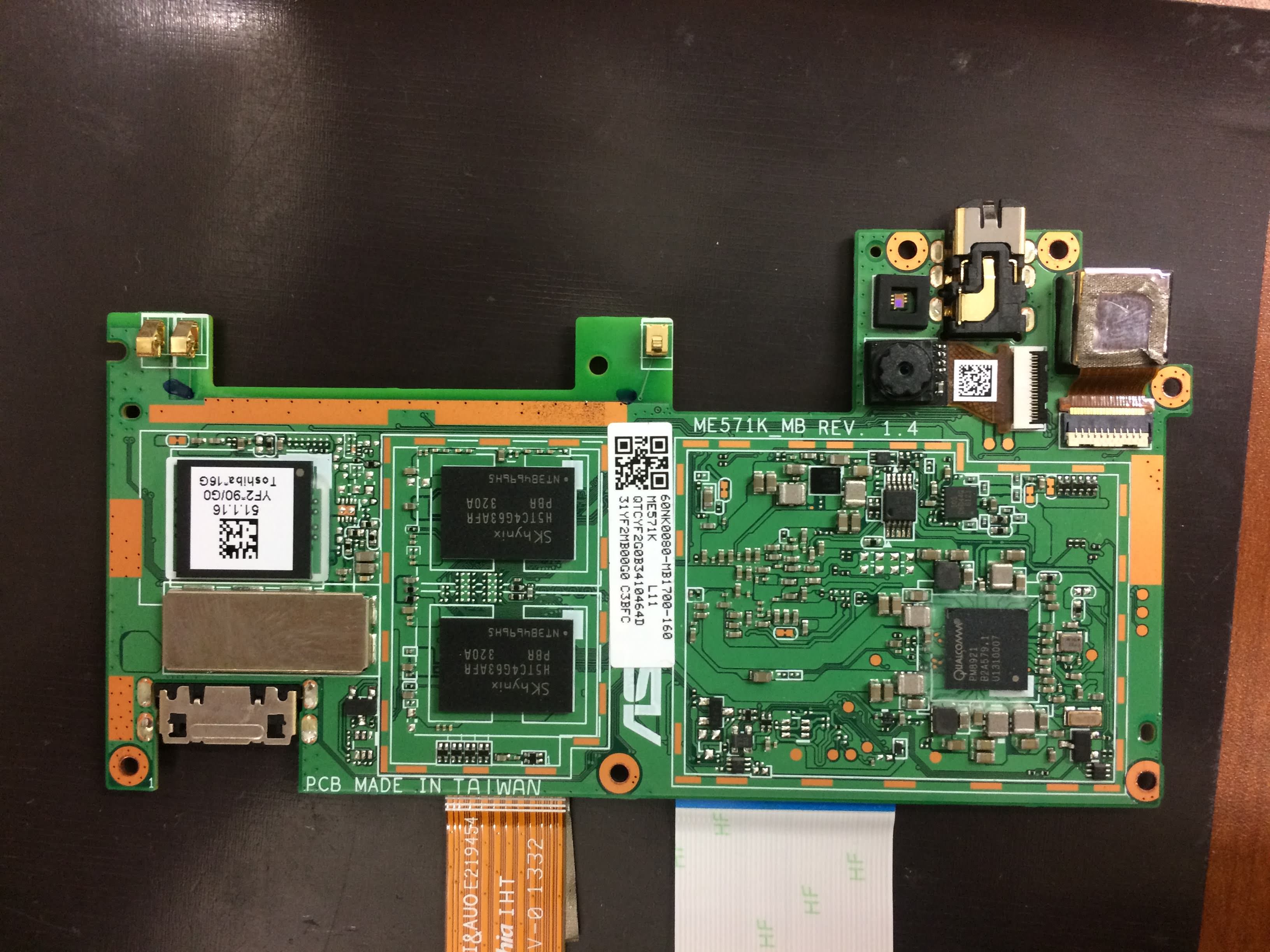 最終的にはこのように基盤を取り外します。機種によっては基盤を外さずに画面交換できるものもありますがNexus7(2013)は基盤を外す必要があるタイプでした。