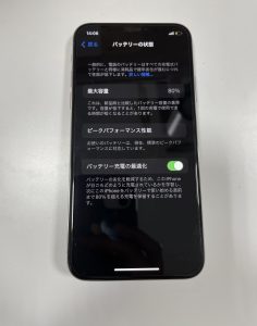 修理前の写真がこちらです。バッテリーの最大容量が80%と表示されています。
