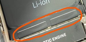 バッテリーは強力な粘着シールで本体に貼り付けられているので、まずはこのテープを剥がす作業です。