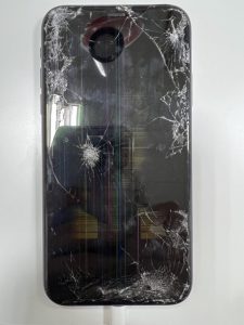 状態を確認してみると、画面全体がバキバキに割れていて、表示不良だけで無くタッチ操作もできない状態でした。