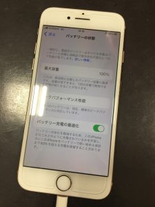 修理後バッテリーの最大容量を見てみると、購入時同様の100%まで復活していました!