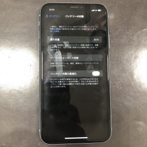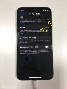 まずは修理前にバッテリーの最大容量を確認してみると、なんと80%の表示が!!