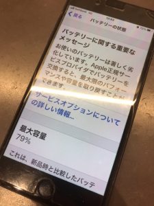 iPhone7P バッテリー交換修理 枚方市伊加賀西町