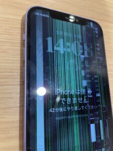 落とした衝撃で画面が割れさらに液晶不良でタッチが全く効かない状態になっていました。