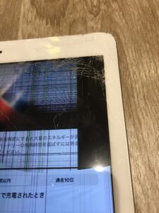 今回右上のガラス割れと液晶不良にて修理をおこないました。