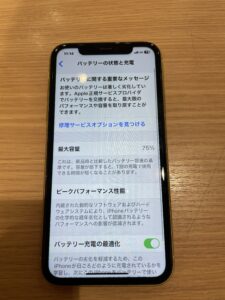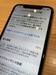 拝見させていただくと75%とかなり劣化しておりました。さらにサービスという表示も出ています。