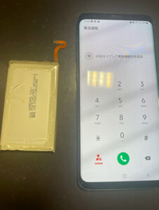 お持ち込みいただいたのはGalaxyS9+で、バッテリー交換修理をご依頼いただきました。