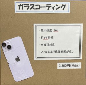 ガラスコーティングとは画面直接液体を塗り硬めて画面を割れにくくする施工方法となり