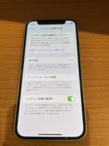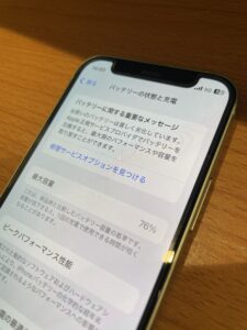 このようにバッテリー最大容量を拝見させていただくと76%とかなり劣化していました!