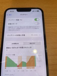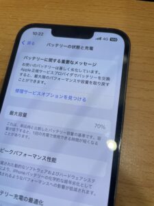 充電の減りがかなり早くこのようにバッテリー最大容量が70%とかなり劣化していました。