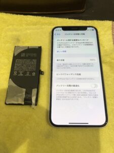 バッテリー交換修理前のiPhone12miniの状態