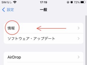 まず初めに、一般的に皆さんが確認しやすい方法は「設定」を開き「一般」を押す。それから「情報」を押すと