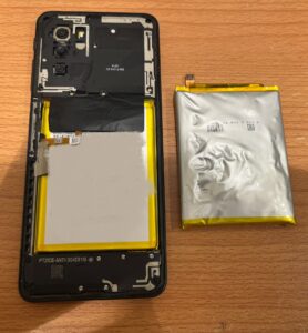 バックパネルが浮いて中のバッテリーが見えているのがわかると思います。