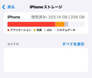 256GBあって容量の大きいアプリをたくさんダウンロードすると、だんだんストレージがかつかつになります。