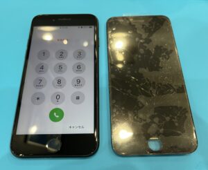 ご来店時の状態を拝見しますとiPhoneSE3世代の画面割れでした。