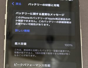 今回、お持ち込みいただいたiPhone13miniのバッテリー最大容量は74%でした。