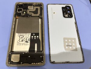 今回のGalaxyA53はバックパネルを開けてバッテリー交換をおこないます。