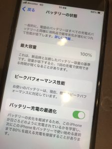 正常にバッテリー交換が完了し、最大容量も写真の通り100%になっていることを確認できました。