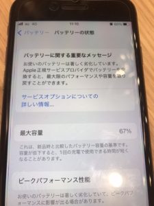 iPhoneのバッテリーは個人差ありますが大体80%前後で交換時期となりますので