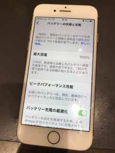 機能のチェックももちろんですが、バッテリーの最大容量が100%になっているかも確認!!!