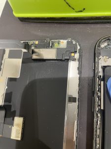 そして画面を本体から分離させ、画面に付いているイヤースピーカーを取り外し新しい画面に取り付けます。