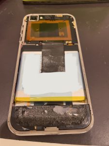 今回一度中を開けてみるとバッテリーが膨張していることにより背面パネルが押し出されて浮いている状態でした。