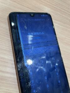 早速見せていただきますと、道路で落としてしまった衝撃で画面が割れ