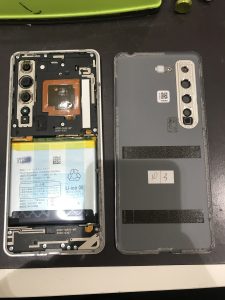 まず初めにSIMトレーを外し背面パネルを開けていきます。