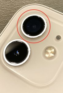 ご来店時の状態としましては2個あるカメラレンズのうち上の超広角レンズが割れていました。