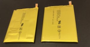 さてこちらの写真は元のバッテリーと新しいバッテリーの比較です。