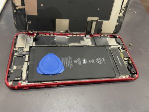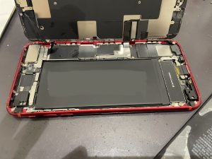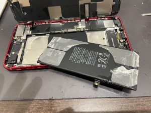 iPhoneのバッテリー交換はこのようにバッテリーを取り出し新しいものに取り換えていきます。