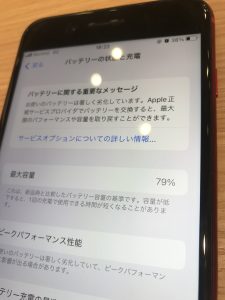 写真のようにバッテリーの最大容量の表示が79%となっており