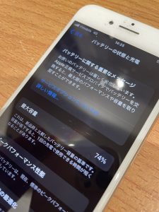 早速バッテリーの状態を見てみると最大容量が74%まで下がってしまっていました
