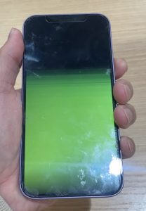 こちらの写真の通り画面の下半分が緑になっていて操作が出来ない状態になっていました。